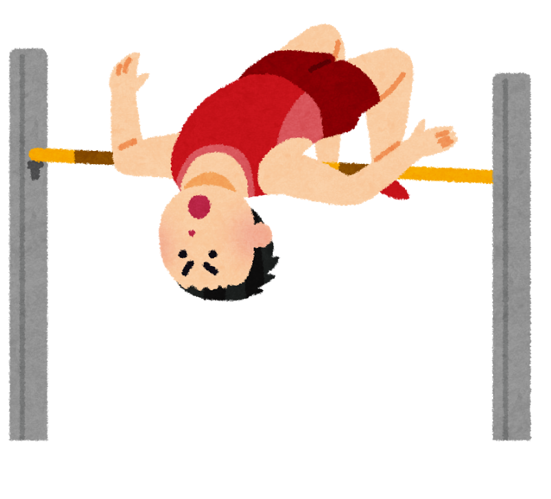 小学校までは走り高跳びといえば、足を上げてバーを跳び越える「はさみ跳び」、お腹をバーに向けて跳び越える「ベリーロール」でしたが、中学から背中をバーに向けて跳び越える「背面跳び」を覚えました。