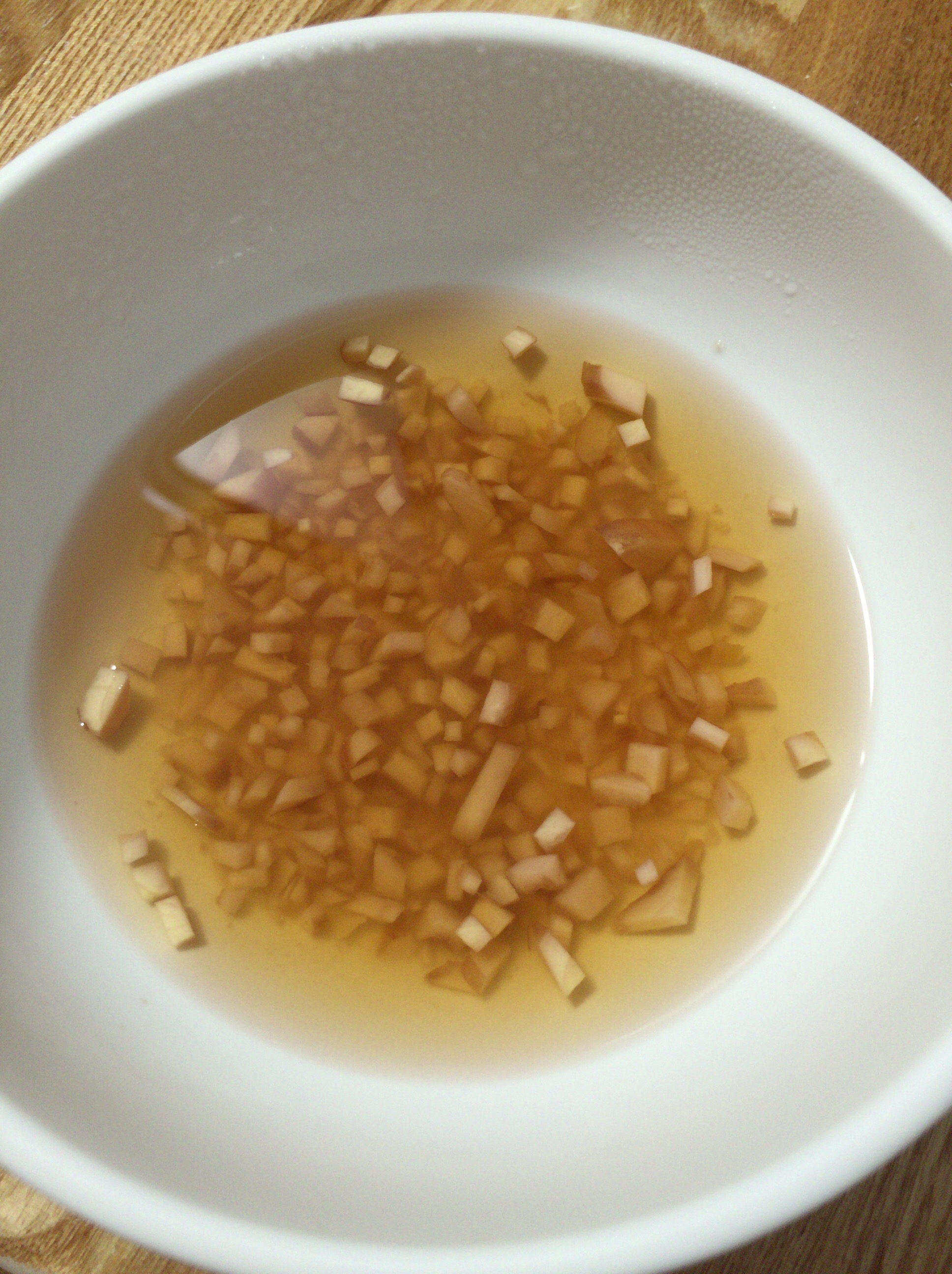 しょうが100gを皮付きのままみじん切りにして容器に入れ、黒酢100ccとハチミツ20gを混ぜて1日おけば完成!