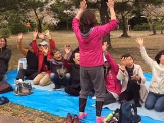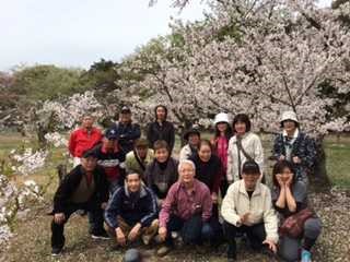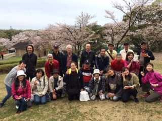 最後は6分咲きの桜の前で(笑)集合写真をパシャり!